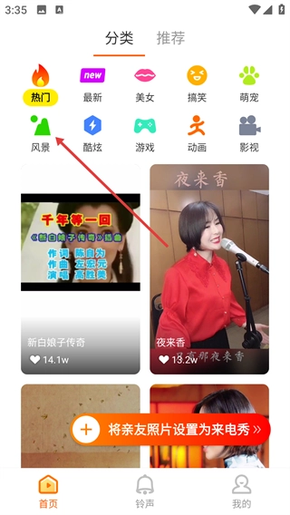 预览后点击【设为来电秀】按钮,把这个风景视频设置成来电秀,这样就完成来电秀的设置操作了。