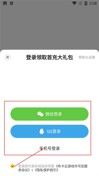 在登录界面可以选择微信、QQ或者手机号这几种登录方式,勾选相关协议后,例如选择【手机号登录】这种对应方式,就能启动登录流程。