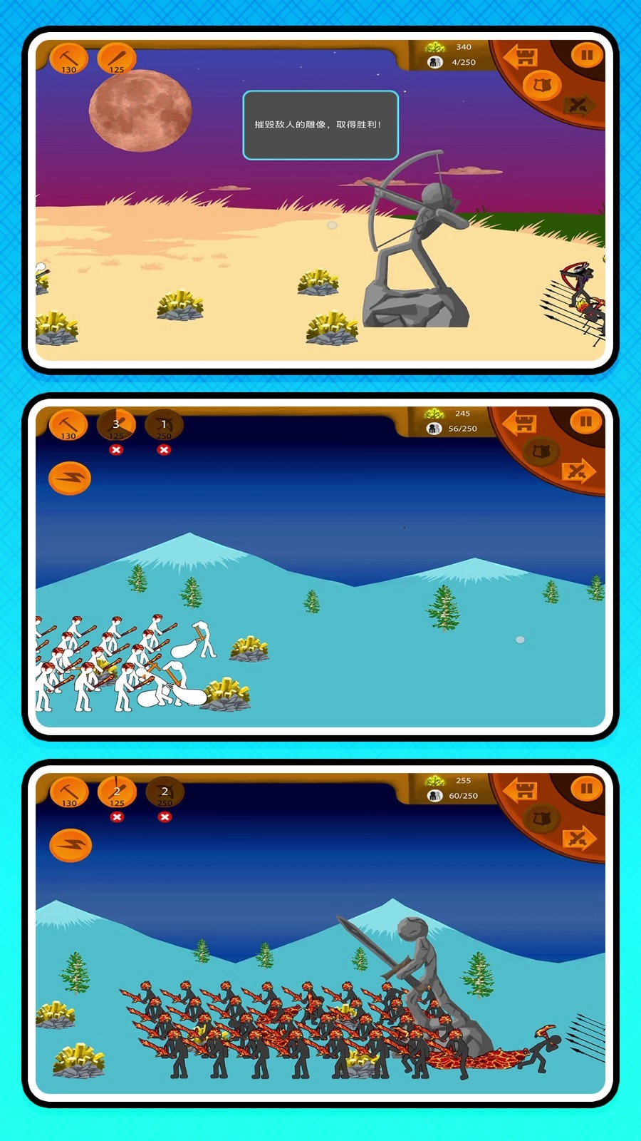 可以精准操控每一个火柴人的移动与攻击动作。手动模式适合执行精细的战术策略,自动模式则方便快速完成部署,让战斗过程更加精彩刺激。