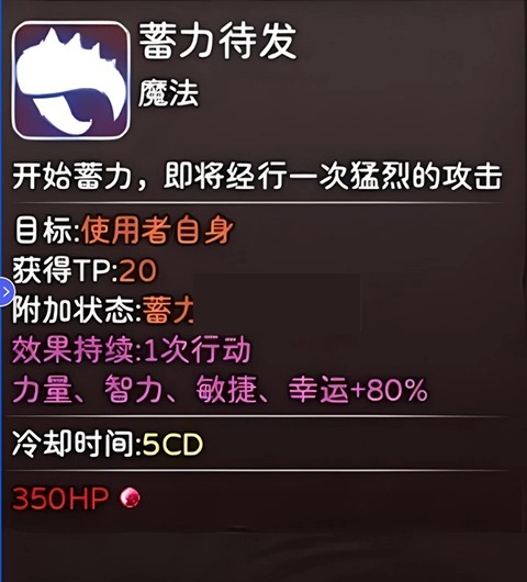 巨浪潮蟹的“蓄力待发”堪称C位必带神技,用少量血量的代价能为下一次行动积攒高额爆发伤害,搭配后续会介绍的“兴奋”效果更能将输出拉满,绝对是必带技能之一。