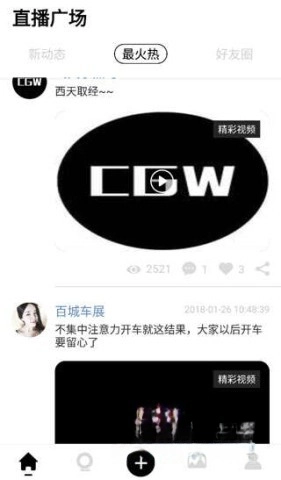 在直播广场页面,轻点页面中间的加号图标,就能选择上传已有的视频内容,或者开启实时行车直播功能,把您的驾驶旅程分享出去。