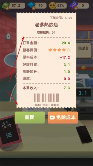 烹饪完成后,可查看订单的收支明细,了解该笔订单的收入情况,以此逐步积累店铺的资金并提升口碑。