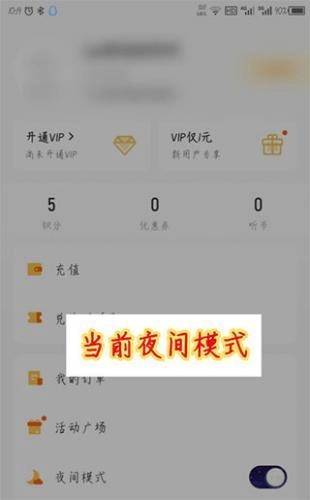 2、打开我的页面后,我们能看到下面的已经模式选项,点击滑块。