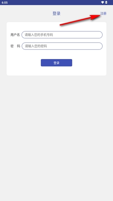 2、进入后需要输入手机号登录,没有账号的点注册。