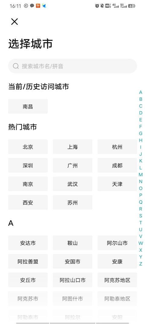 2、进入城市切换界面,点击切换城市按钮
