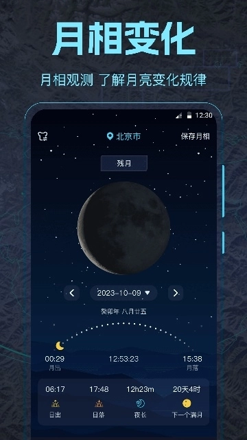 5、如果你对月相颇有研究的话,可以通过该软件来观测月相变化、了解月亮变化规律。