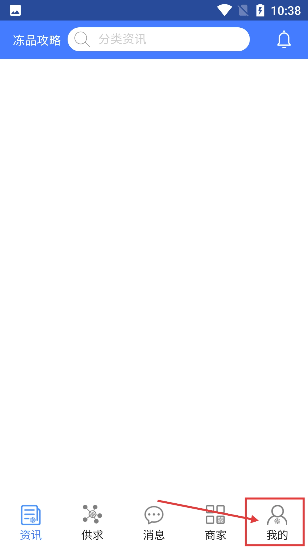 在冻品攻略资讯的首页,点击右下角的【我的】按钮,就能进入个人相关功能界面,方便您进行登录或注册操作。