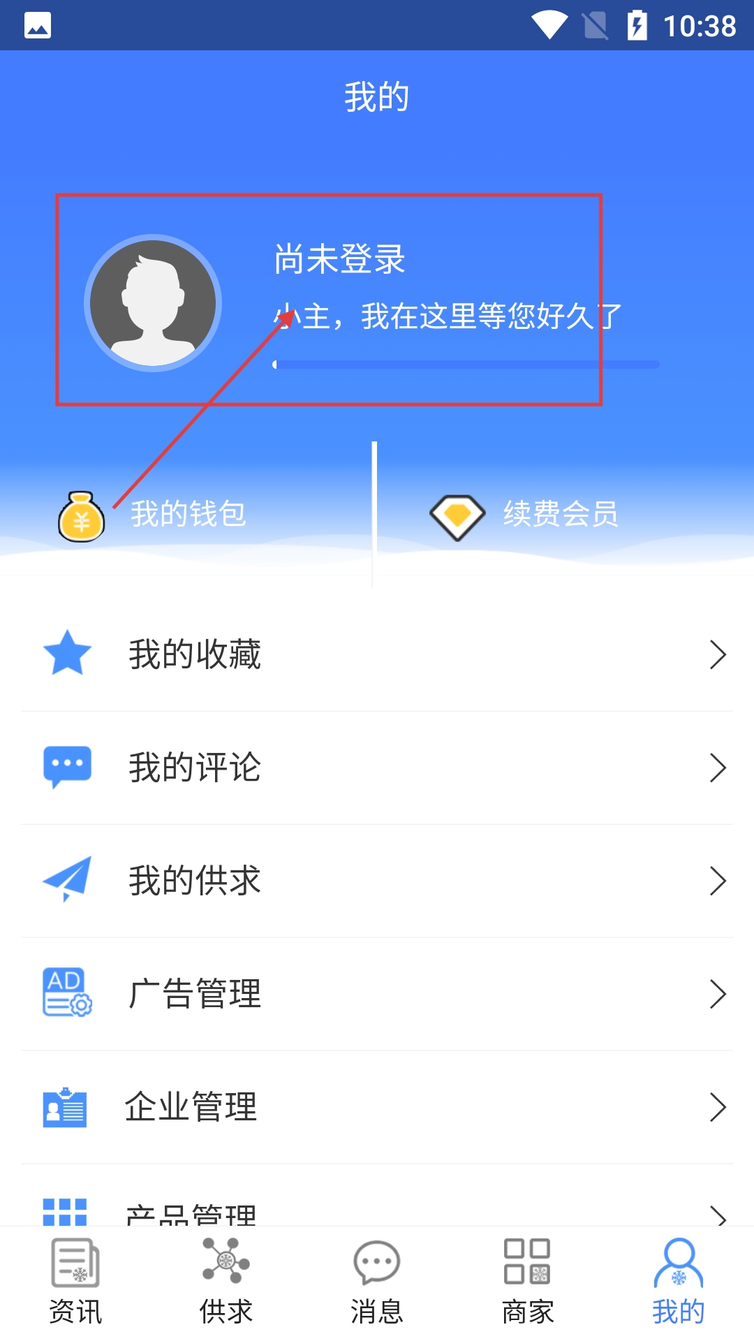 进入【我的】界面后,点击【尚未登录】区域,即可进入登录流程,从而能够使用个人相关功能。