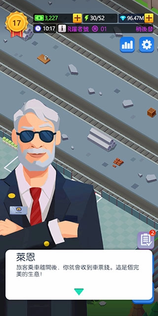 《空闲火车帝国大亨》(Idle Train Empire)是一款以火车站运营为核心的放置类模拟经营游戏。在游戏中,你将化身火车站站长,从一片空旷场地开始,逐步规划、建设并管理专属于自己的铁路枢纽。游戏对真实火车站的运作流程进行了高度还原,涵盖旅客购票、候车、检票登车等一系列环节。你需要通过引入不同类型的列车、升级各类基础设施、拓展多元化的商业服务等方式,不断优化运营效率,最终打造出一个高效运转、规模宏大的火车帝国。
