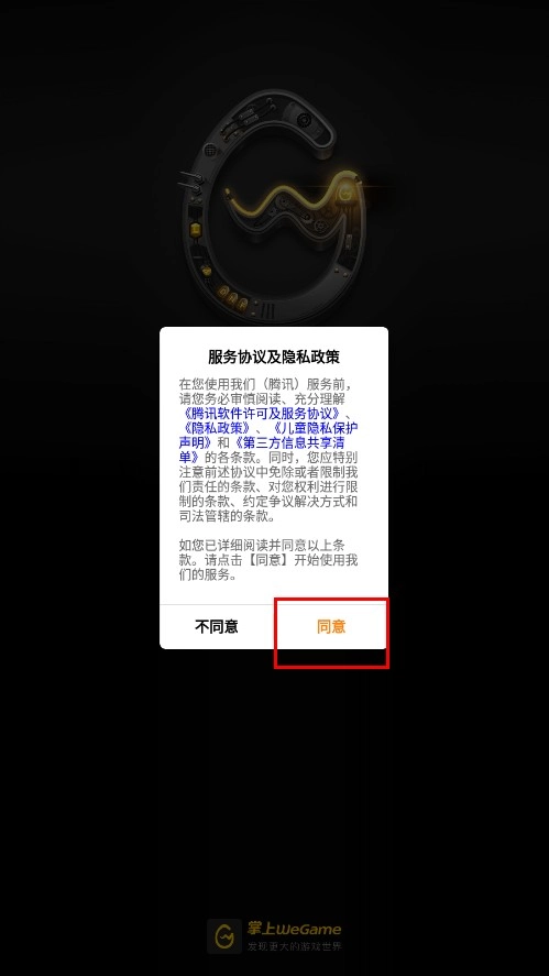 在服务协议与隐私政策页面,点击【同意】功能按钮后,即可进入登录选择界面。