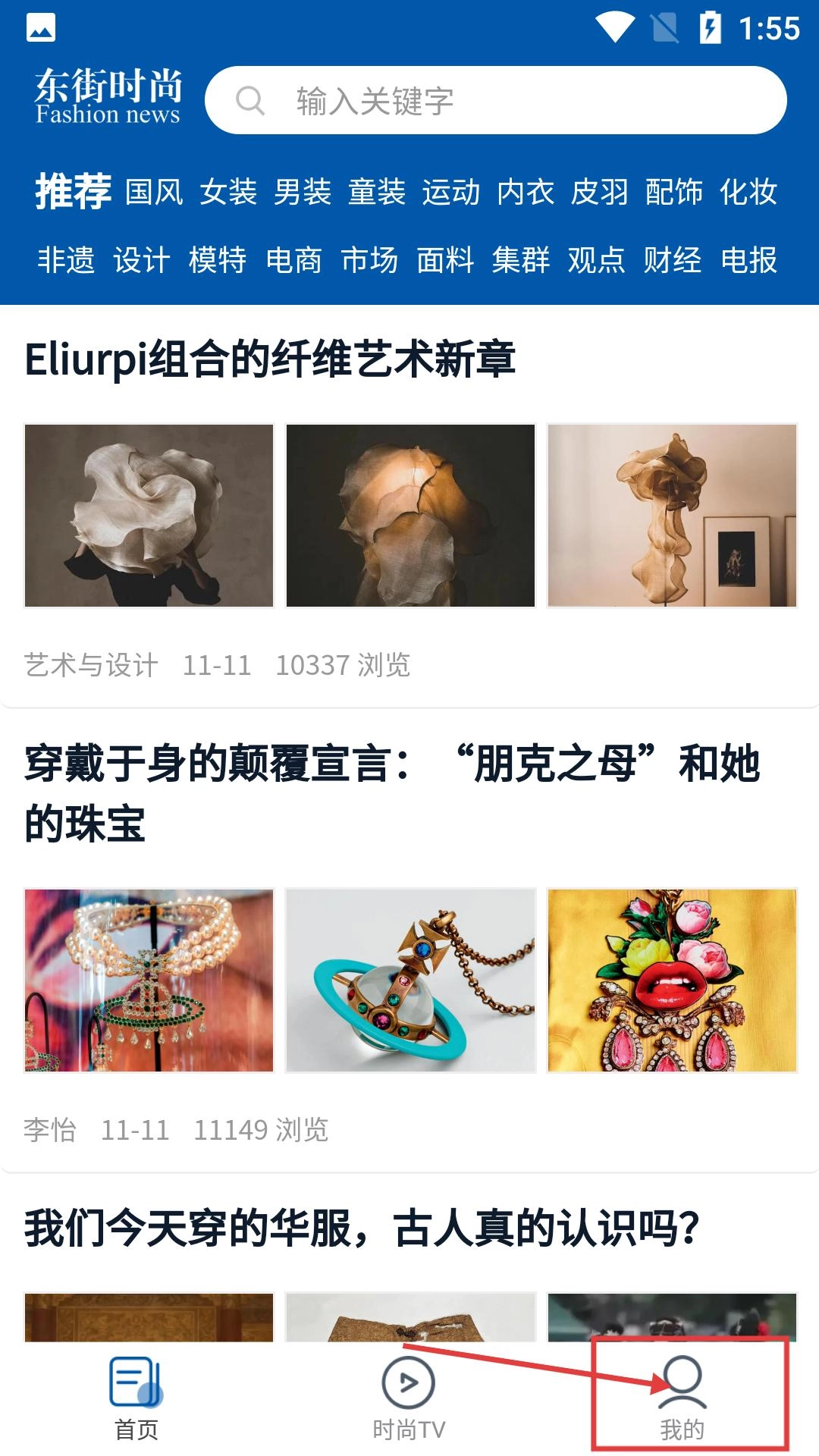 进入东街时尚首页后,点击右下角的【我的】选项,就能进入用户中心界面,方便进行登录或注册操作。