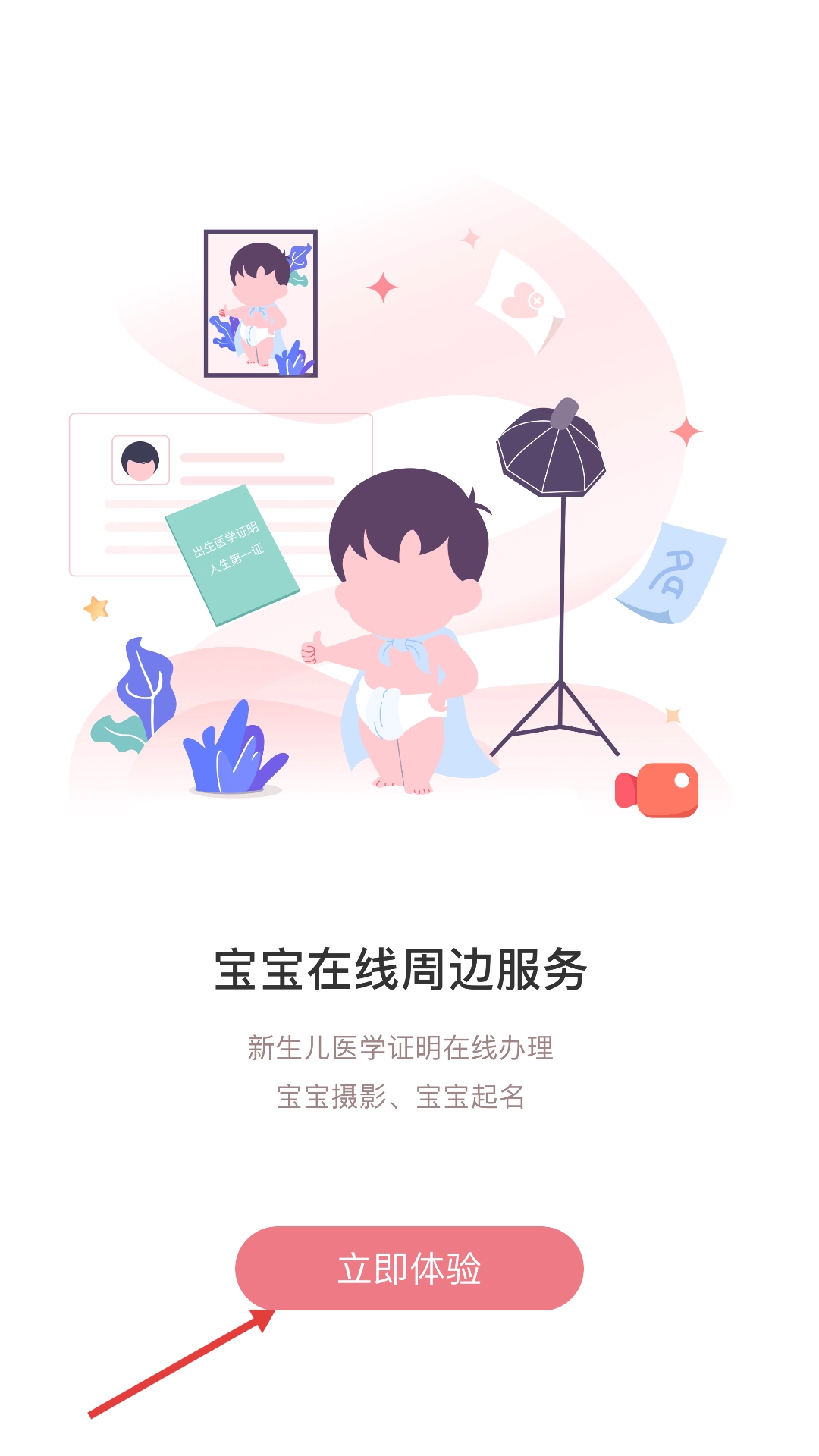 若想体验宝宝在线周边服务,点击【立即体验】按钮即可进入登录界面。