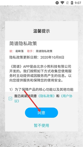 使用前需要勾选【我已阅读并同意《隐私政策》和《用户协议》】,接着点击【同意】按钮,以此完成隐私政策的确认流程。