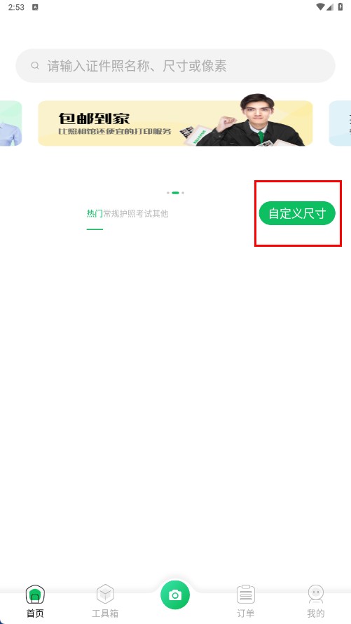 点击【自定义尺寸】功能按钮,即可进入尺寸设置页面。