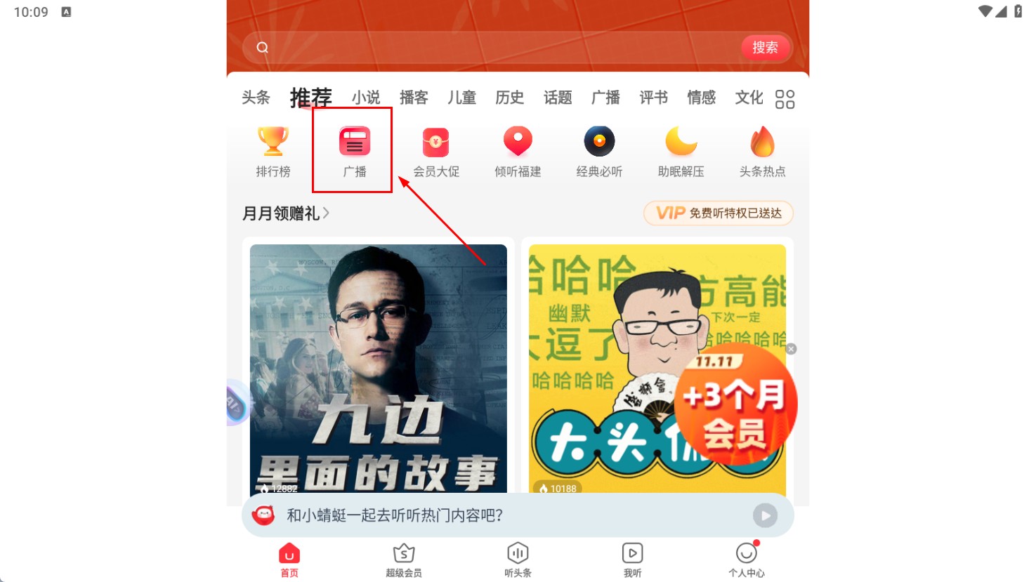 进入首页后,点击“广播”功能按钮,即可进入广播频道页面。