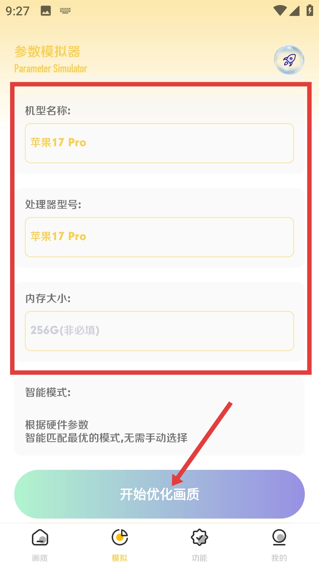 设置好【机型名称】【处理器型号】等参数后,点击【开始优化画质】按钮,即可启动智能画质优化流程。