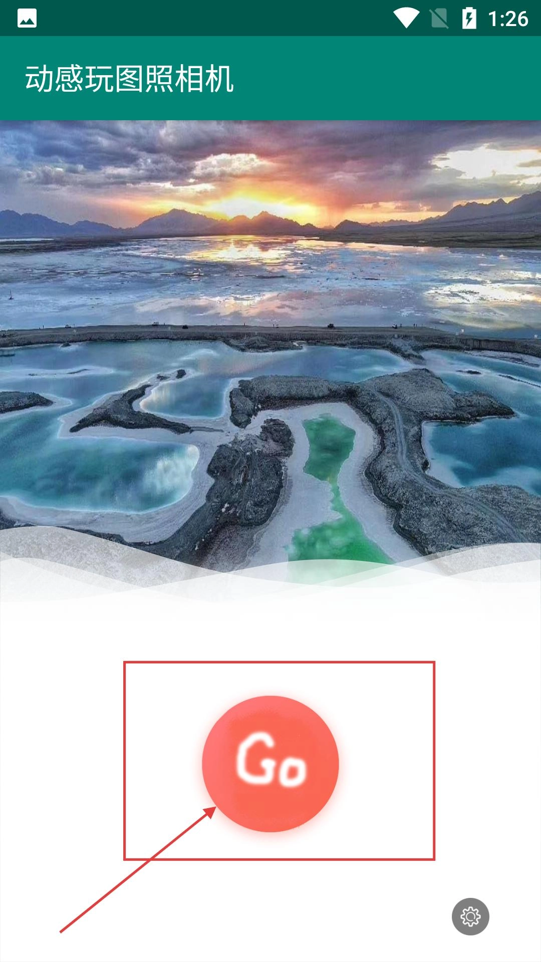 在动感玩图照相机的启动页面,点击【Go】按钮,就能进入相机功能界面,开启拍照与图片编辑功能的使用。