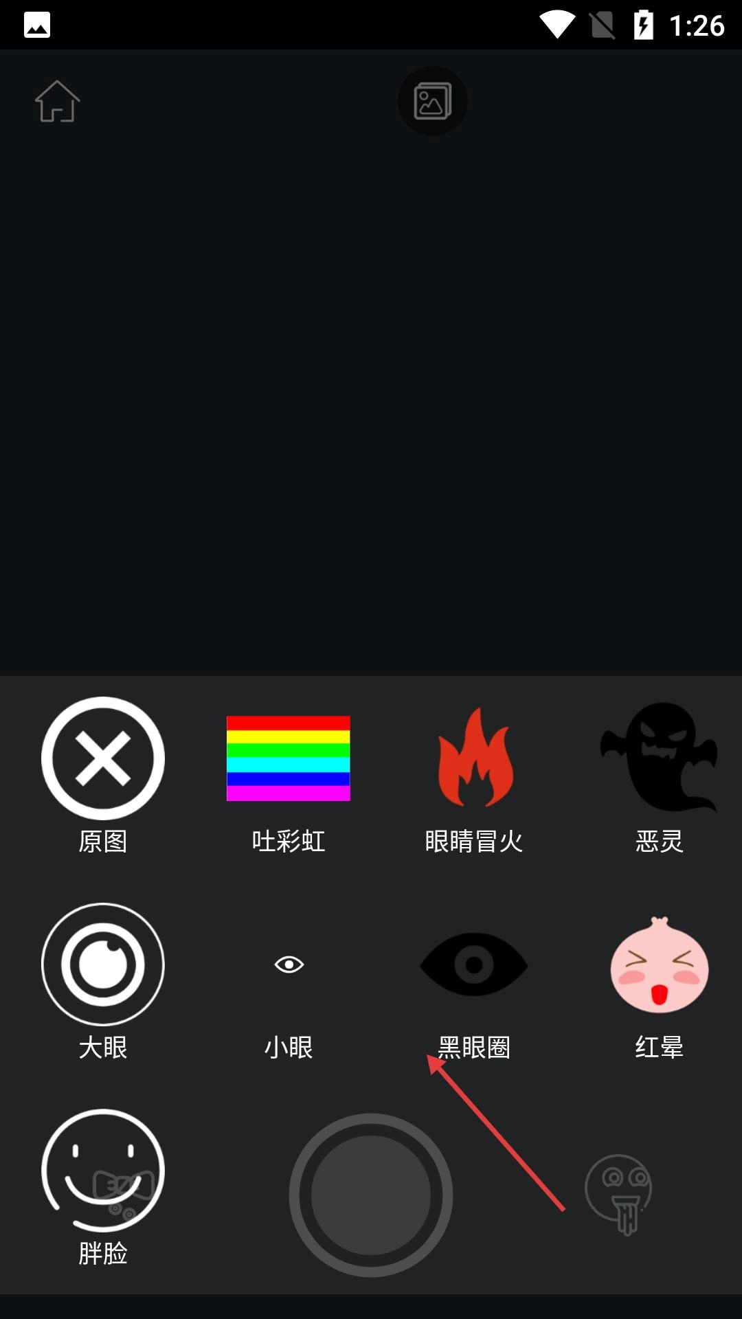 进入相机界面后,底部会显示拍摄按钮与特效选择区域,点击特效图标即可展开特效列表。