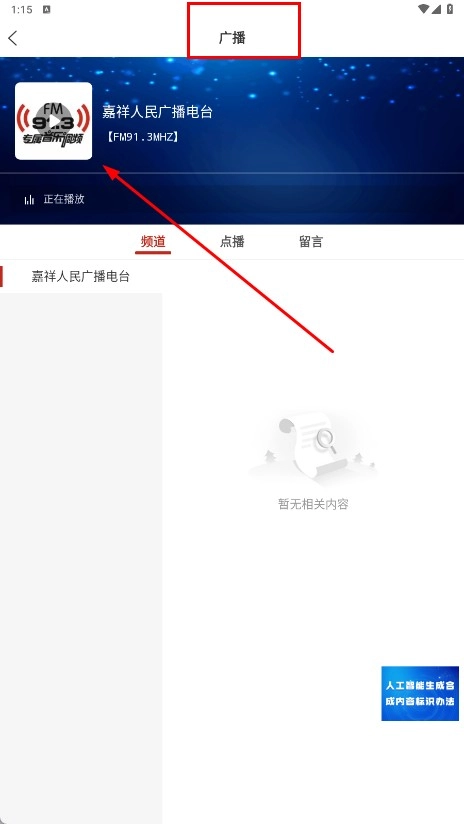 点击【听广播】功能入口,进入广播页面后,选择【嘉祥人民广播电台】这个电台名称,即可收听该广播。
