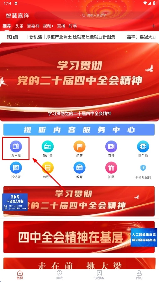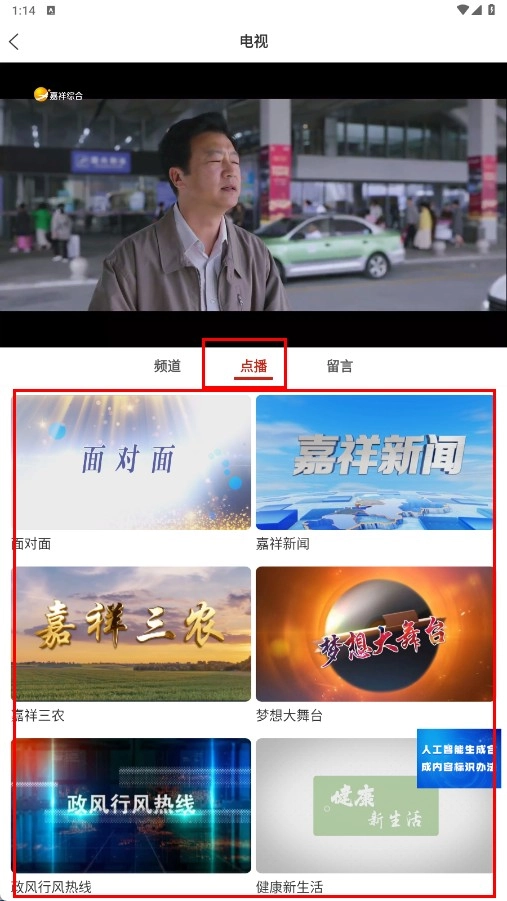 切换至【点播-功能标签】,即可挑选【面对面】【嘉祥新闻】等点播内容进行观看。