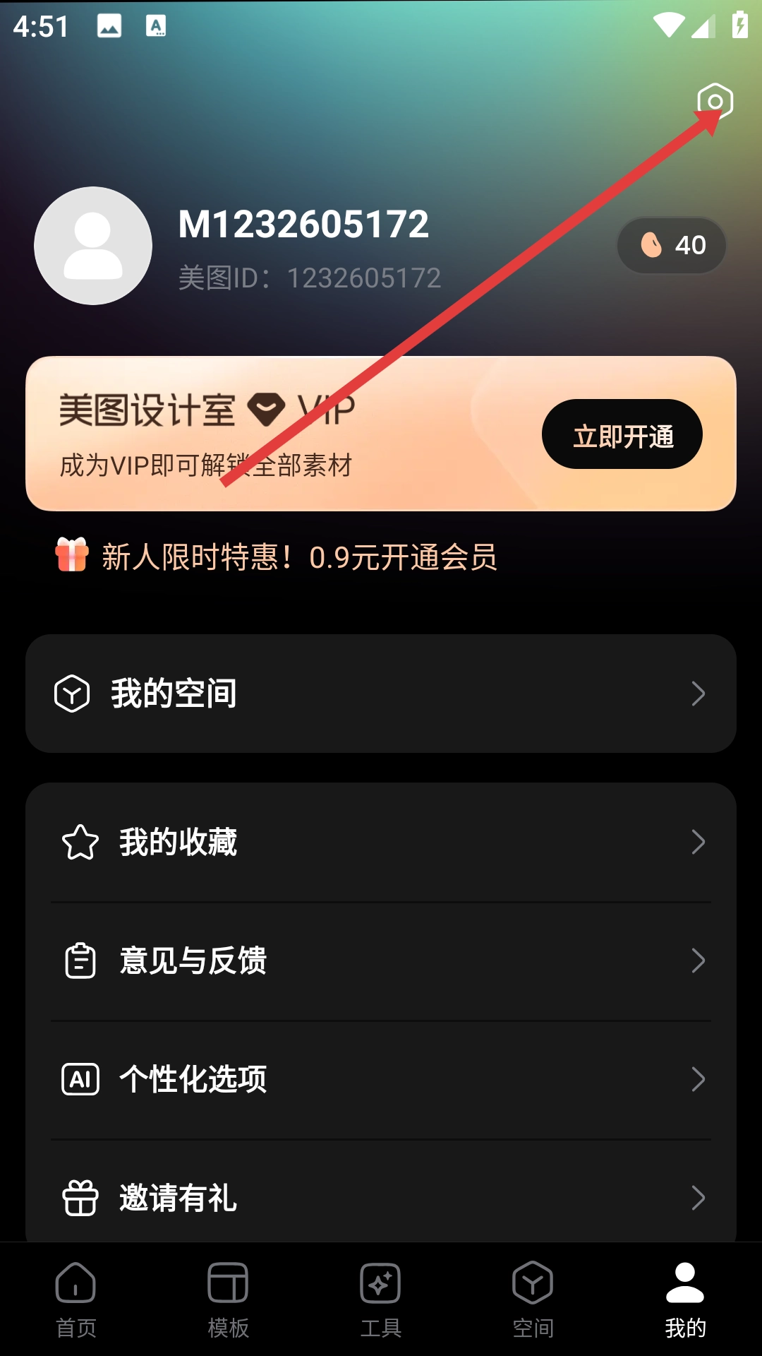 在“我的”页面中,点击右上角的设置图标,即可进入设置界面。