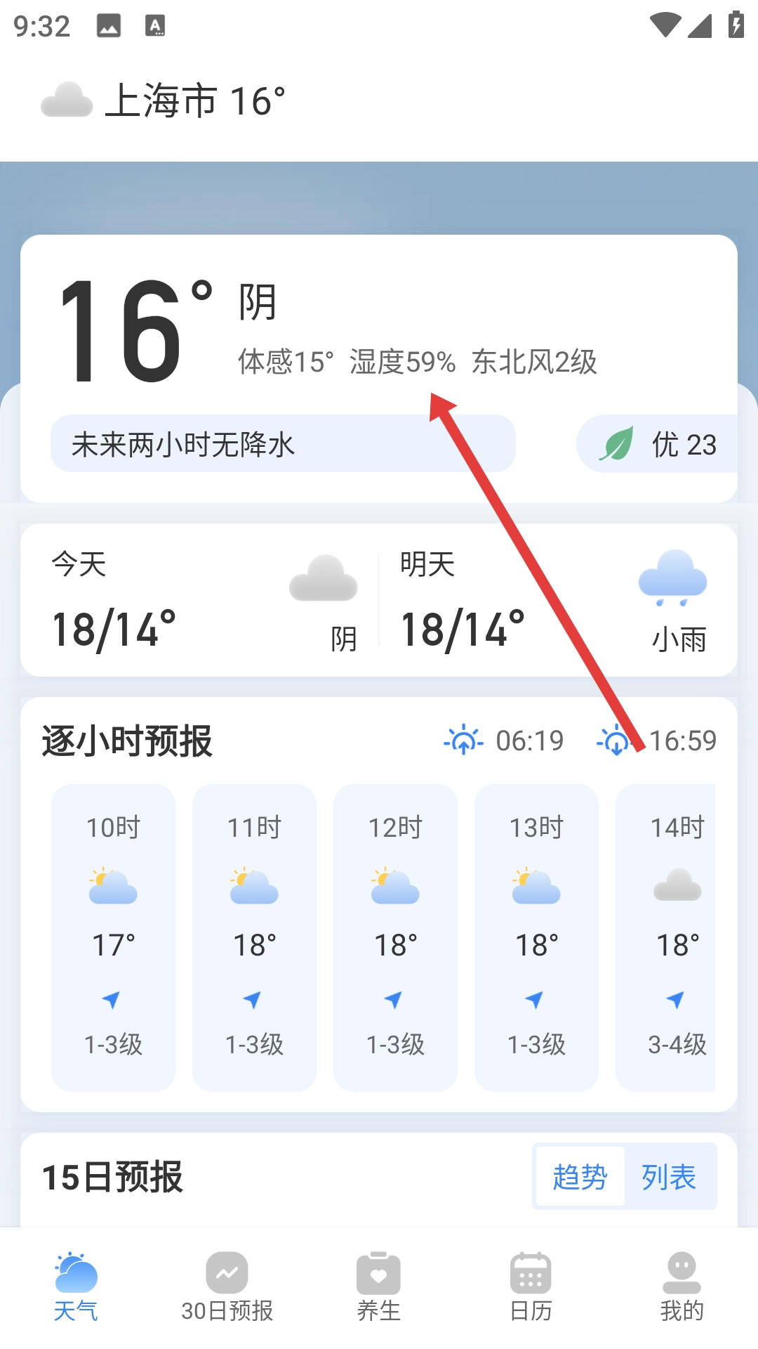 选定城市后,就能查看该城市的天气详情,像温度、天气情况、体感温度之类的信息都包含在内。