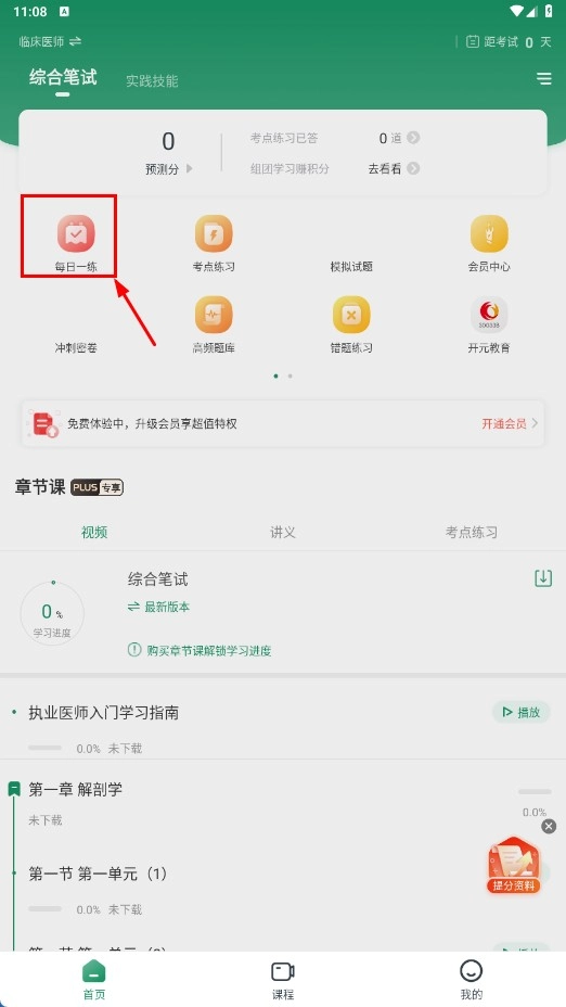 点击【每日一练-功能按钮】,进入每日一练页面。