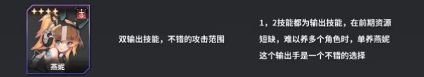 它具备两个输出技能,攻击范围也颇为可观,在前期资源有限时培养起来会比较轻松。