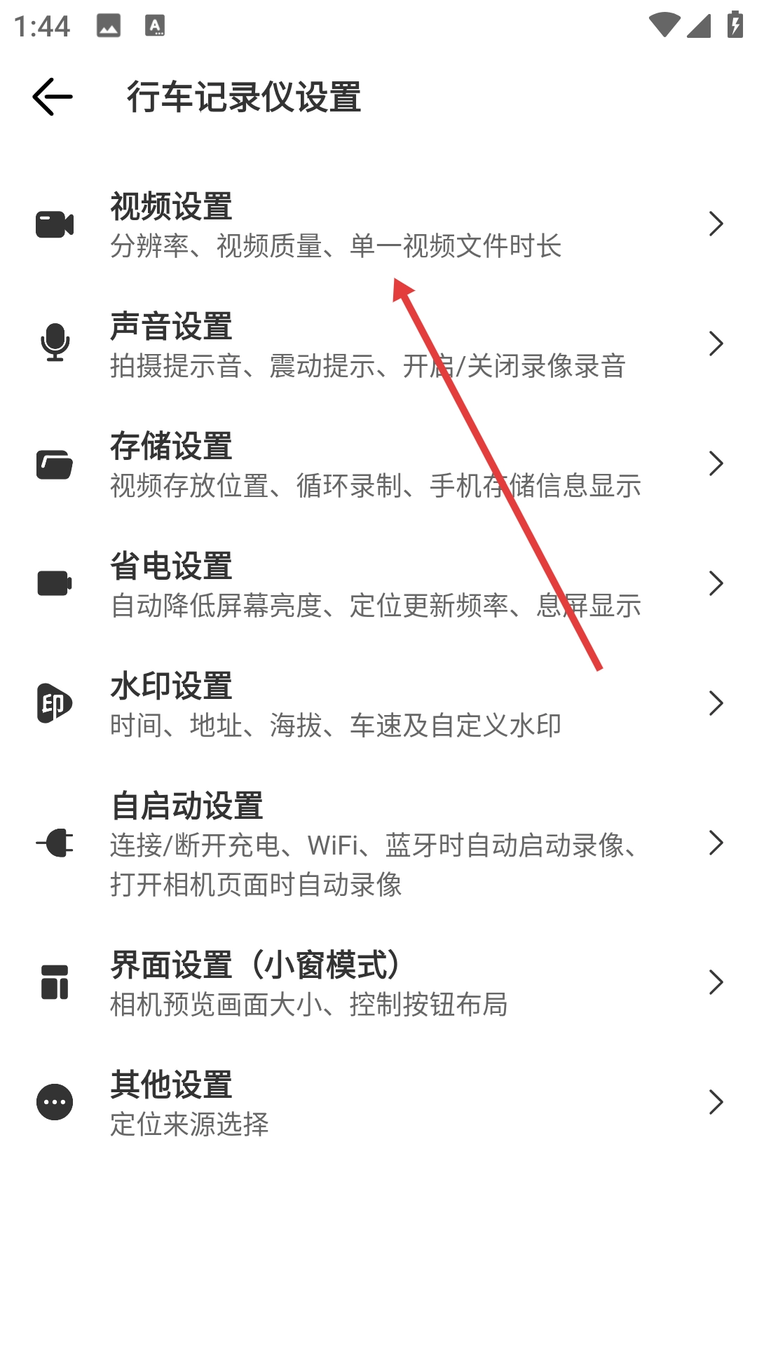 进入行车记录仪的设置界面后,找到并点击【视频设置】这一选项,即可进入对应的视频设置页面。