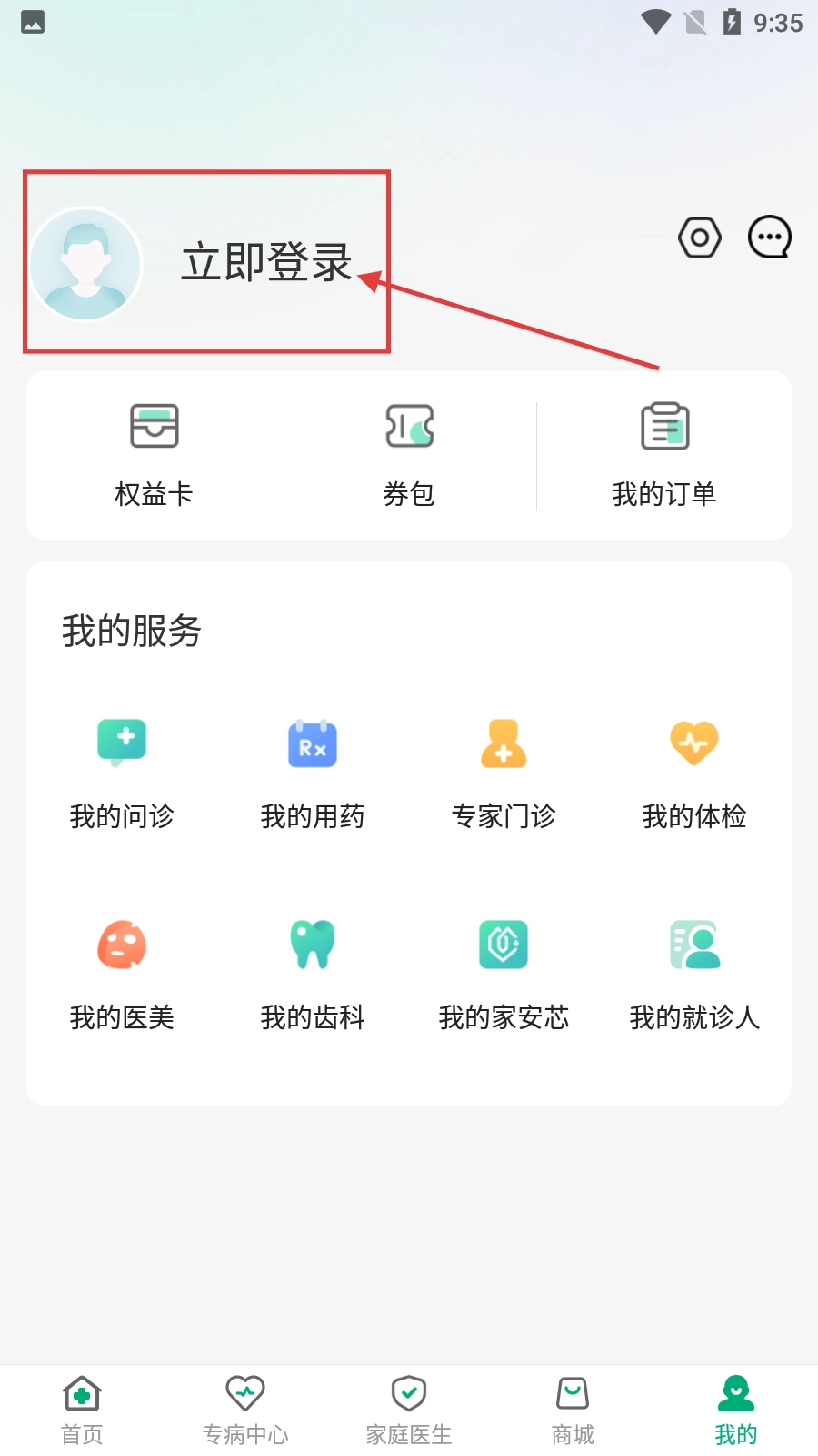 在【我的】页面,点击【立即登录】区域,进入登录界面。