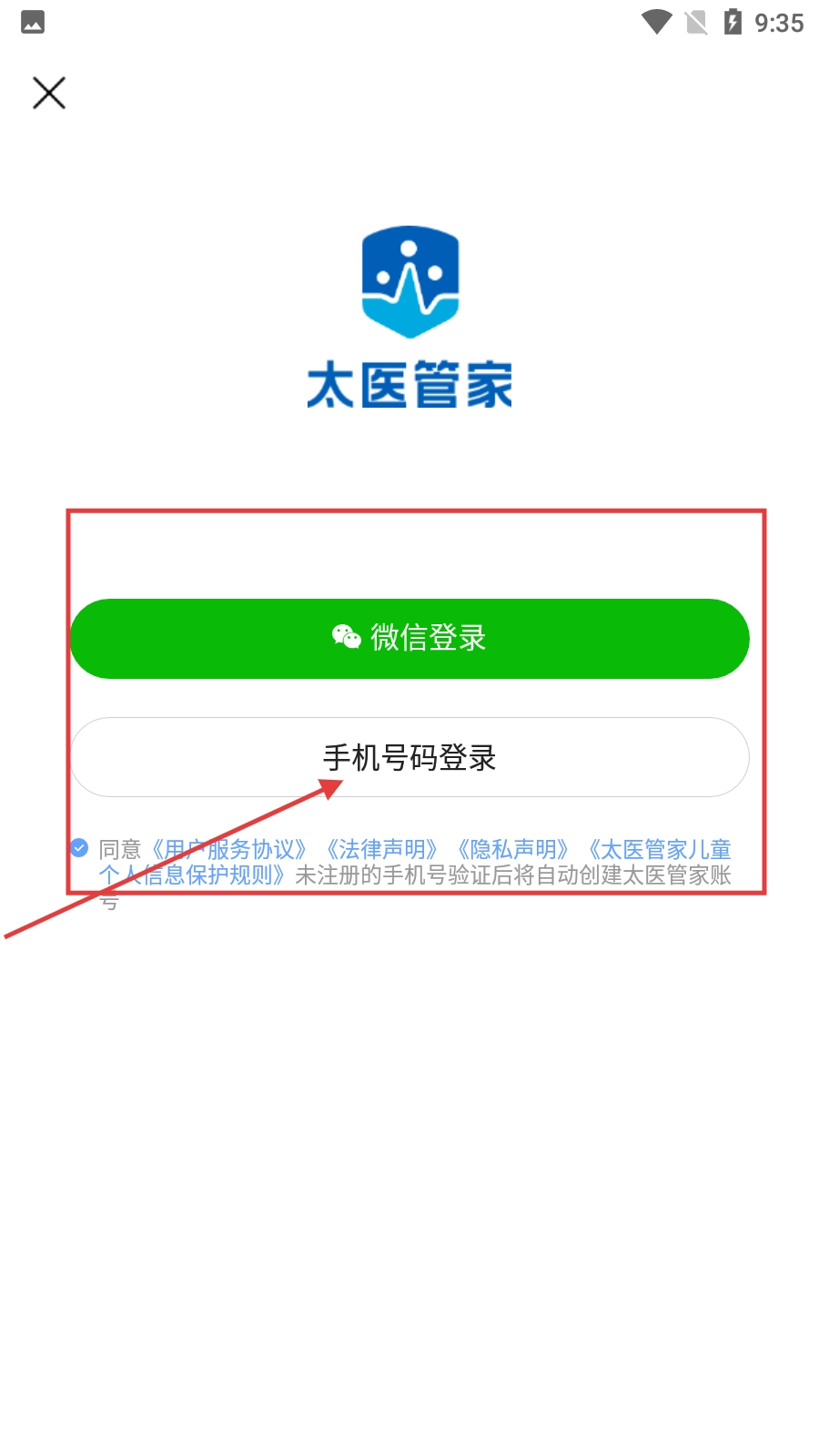 在登录界面,选择【手机号码登录】的方式,即可进入手机号登录流程。