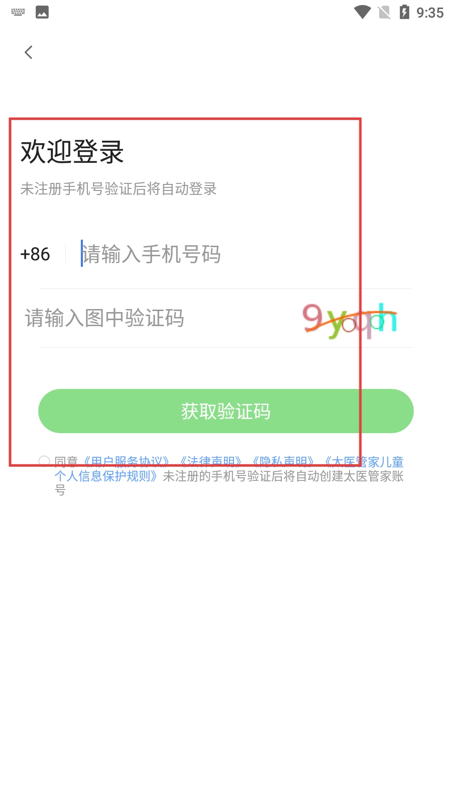 在手机号登录页面,输入手机号码与图中的验证码,接着点击“获取验证码”按钮,即可完成登录流程。