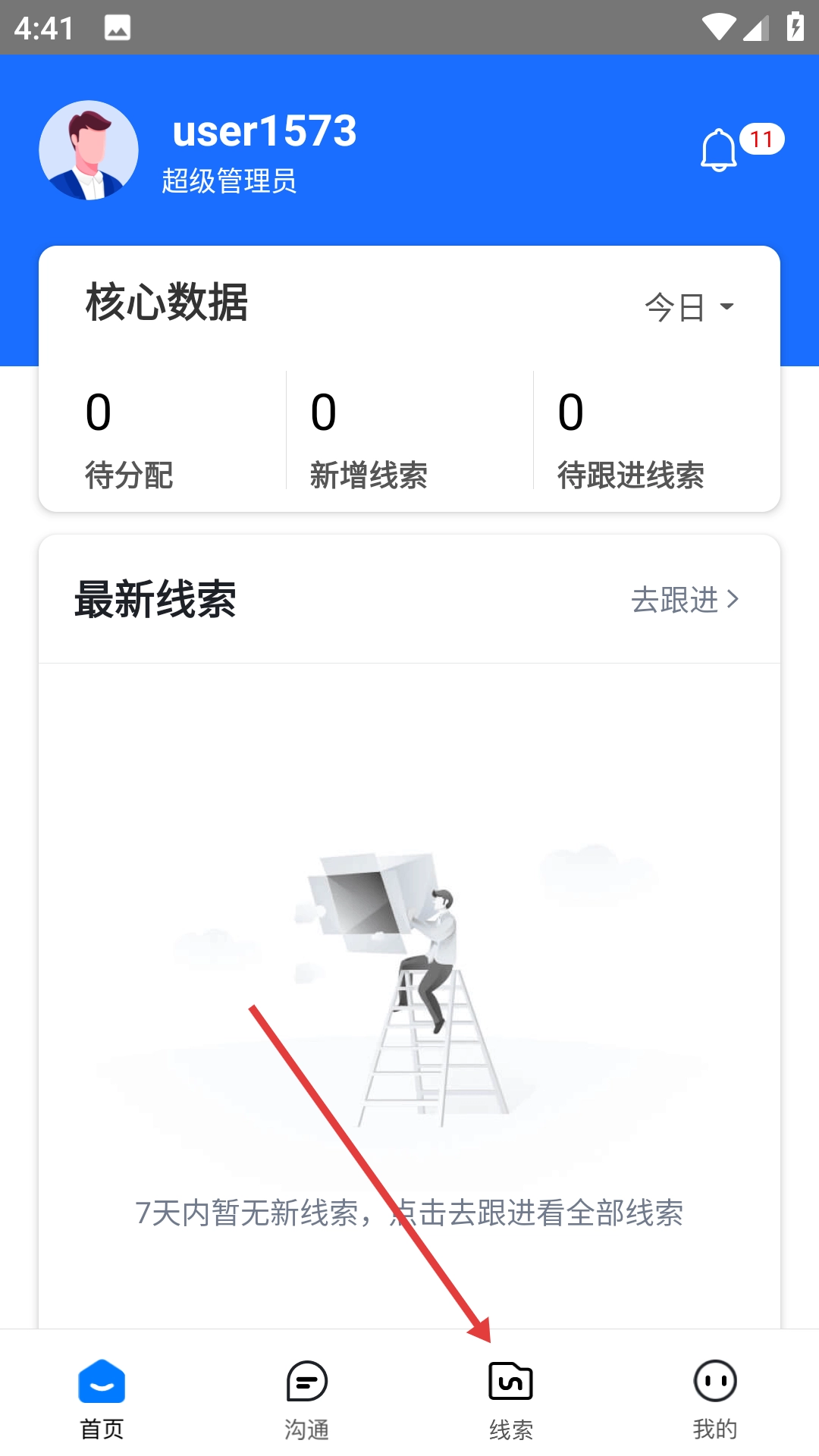 在操作菜单里找到【新建线索】选项并点击,即可进入新建线索的页面。
