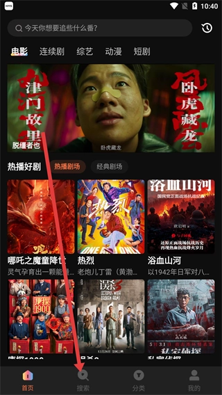 打开影音软件的首页后,点击底部的【搜索】按钮进入搜索页面,在该页面能够看到今日热搜等相关内容。