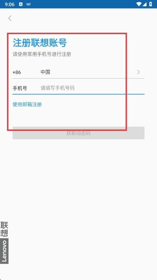 在注册页面,可填写【手机号】,也能选择【使用邮箱注册】,以此完成联想账号的注册流程。
