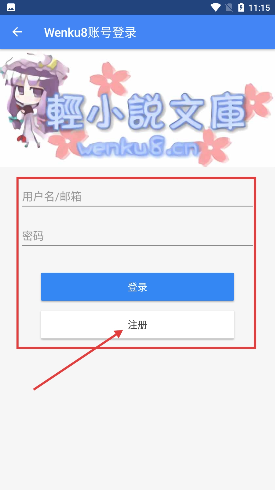 在Wenku8的账号登录界面,既能够输入用户名或邮箱以及密码后点击【登录】按钮,也可以选择点击【注册】按钮来完成账号的注册操作。
