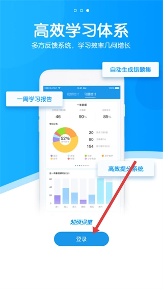 在【高效学习体系】的介绍页面中,找到并点击【登录】按钮,即可进入账号登录或注册的界面。