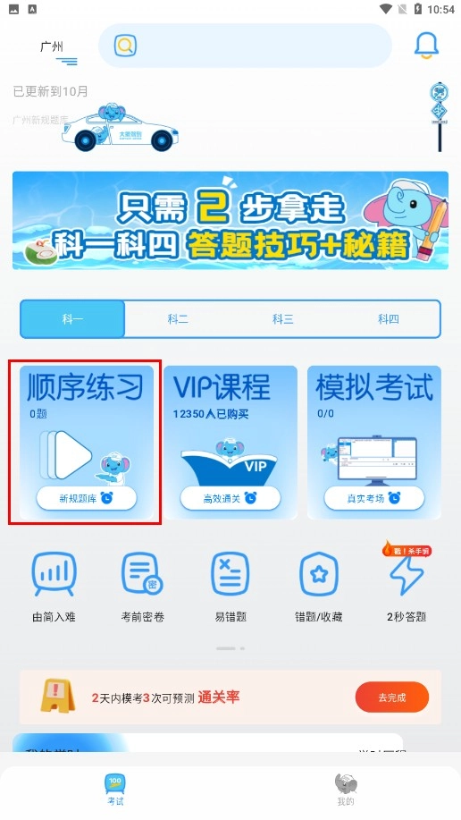 点击【顺序练习-模块】,进入科目一练习界面。