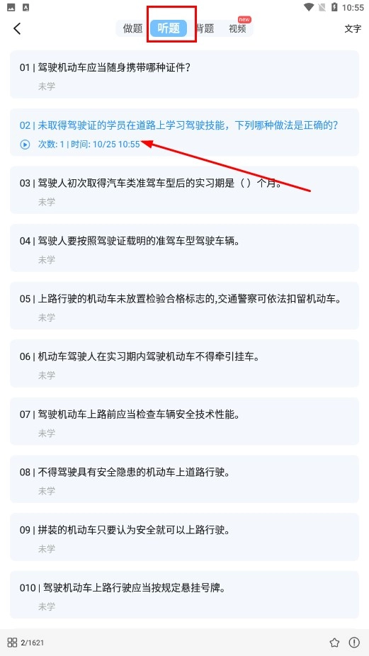 切换到【听题-板块】,选择题目进行听力练习。