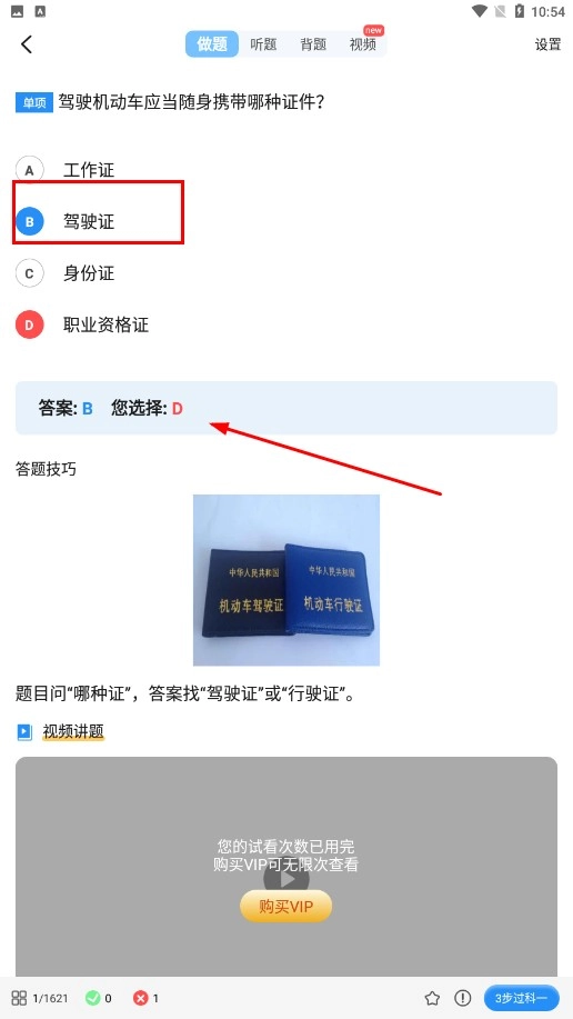 做题时,要明确答案是B选项对应的驾驶证,同时学习答题技巧。