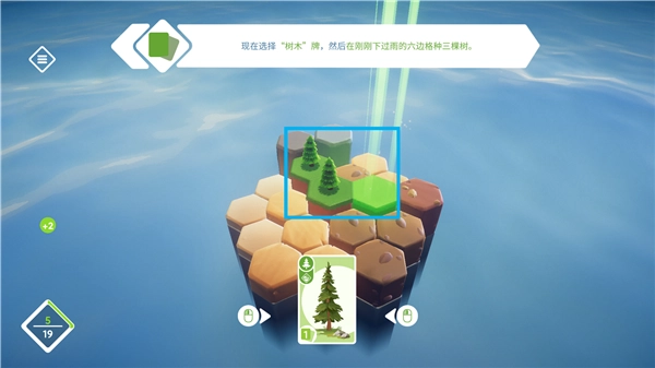 在刚才降雨的格子中选择树木卡牌进行种植。