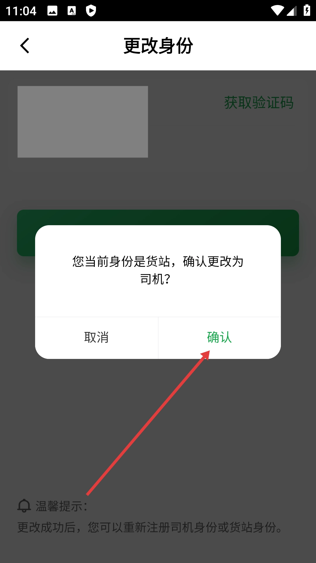 在确认框中点击【确认】,提交身份更改请求。