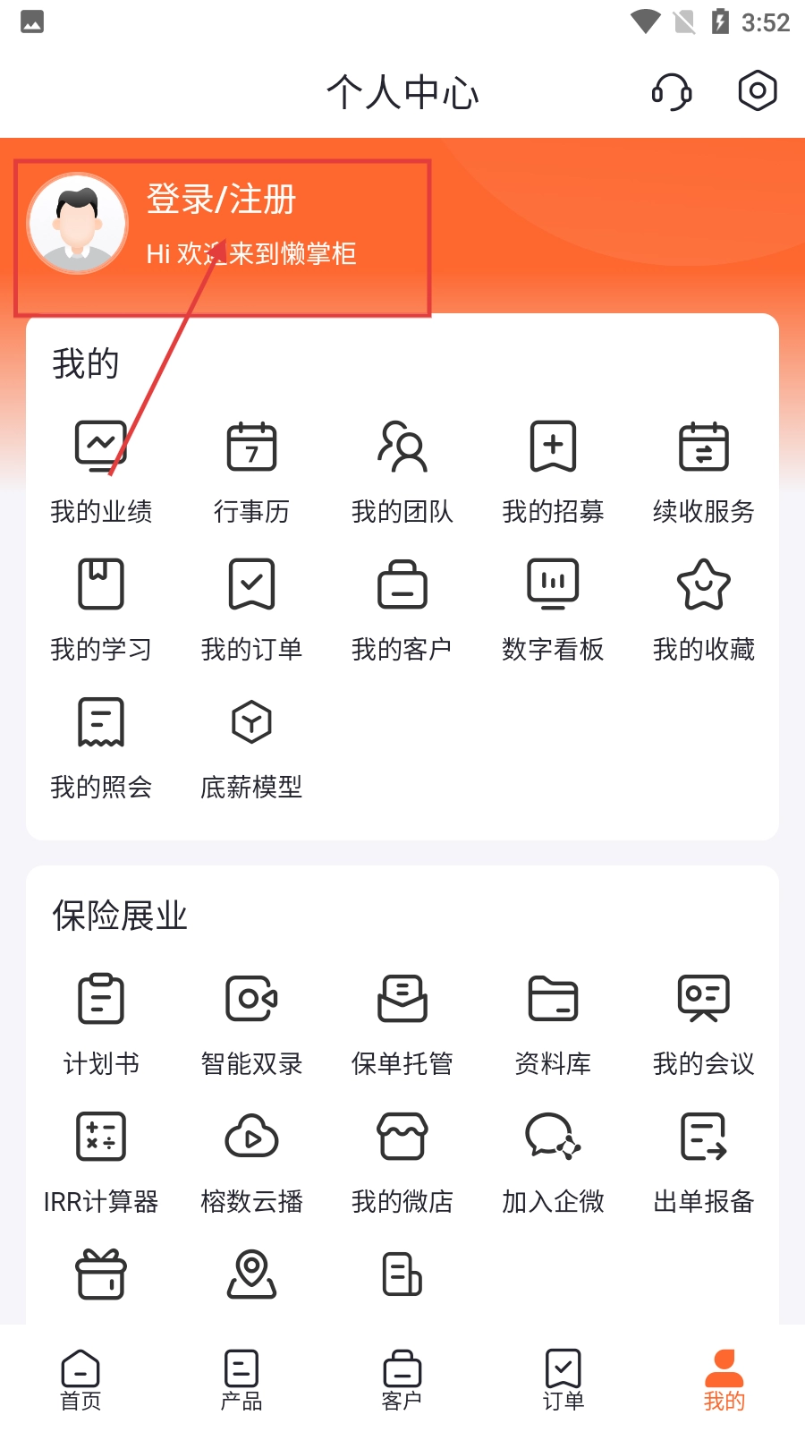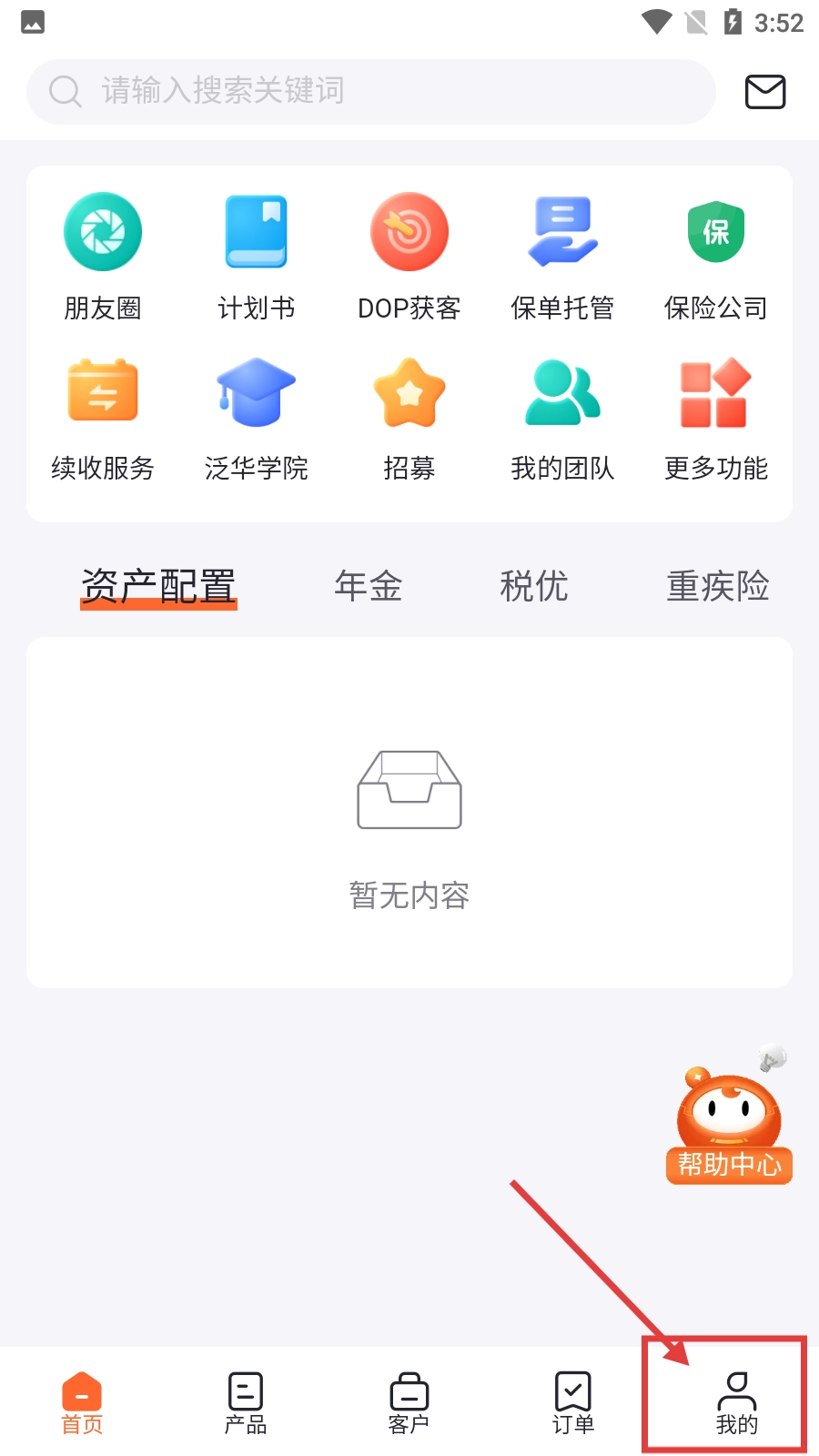 在保险类主界面中,点击底部导航栏的【我的】选项,即可进入个人中心界面。