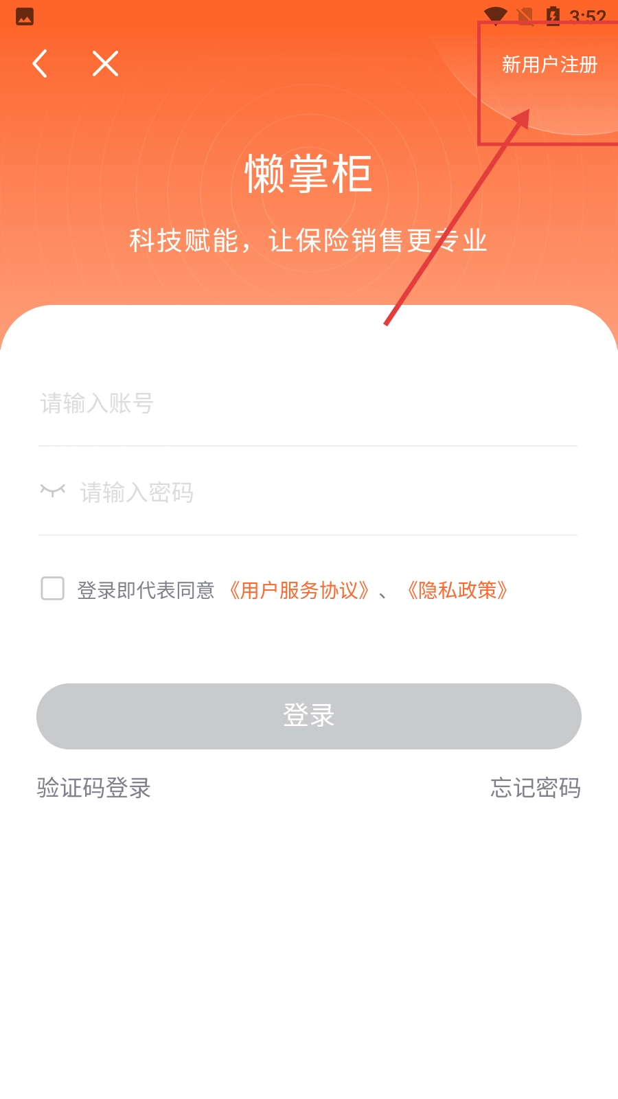 在登录选择界面中,点击【新用户注册】选项,即可进入注册流程界面。