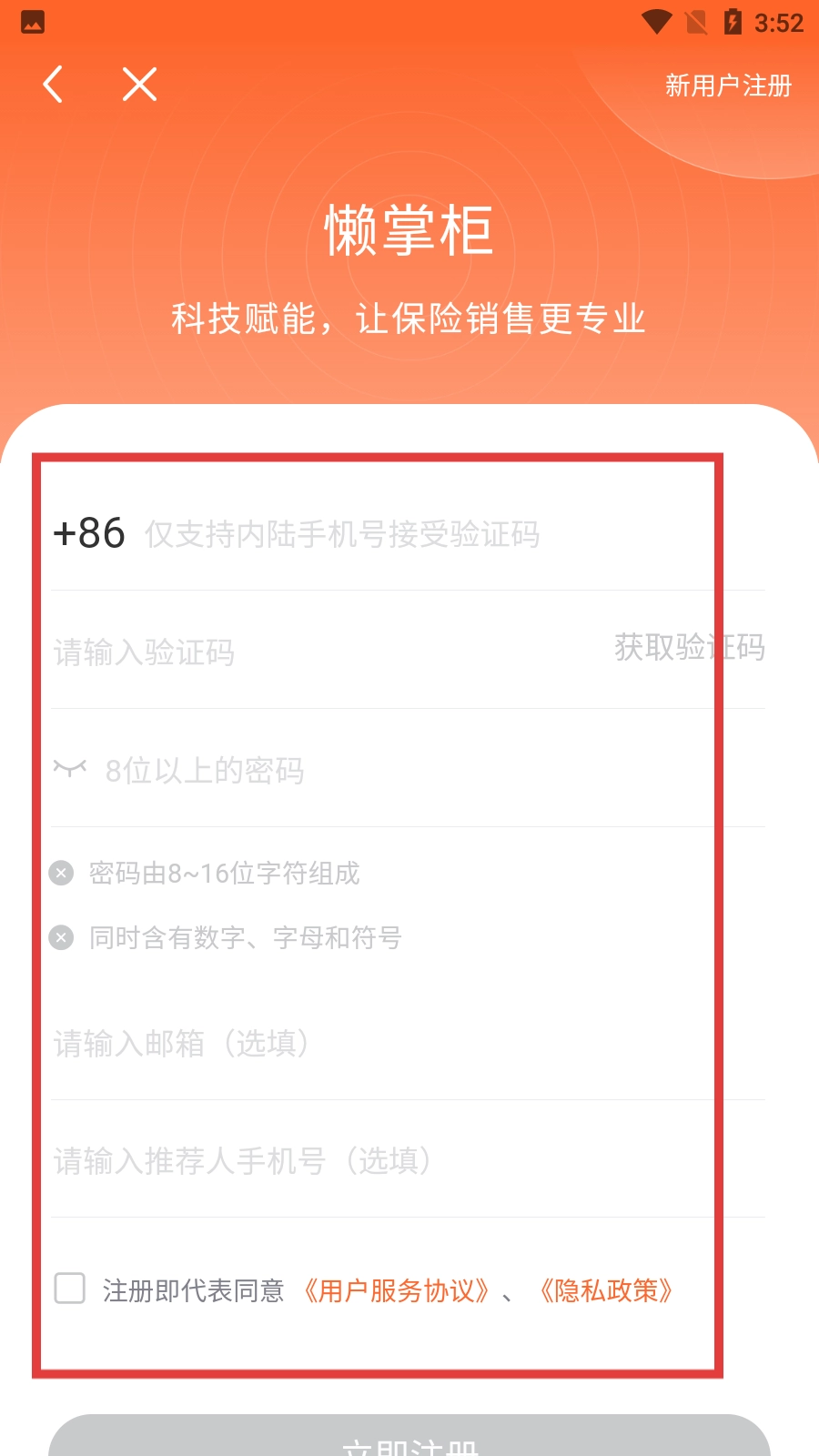 进入注册页面后,按照提示依次填写手机号、输入验证码,最后点击【立即注册】按钮,就能完成账号的注册流程。