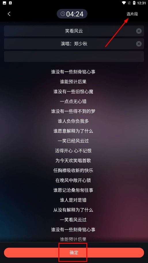 在选片段页面,您可以点击【选片段】功能按钮进行选择,完成选择后再点击【确定】功能按钮即可。