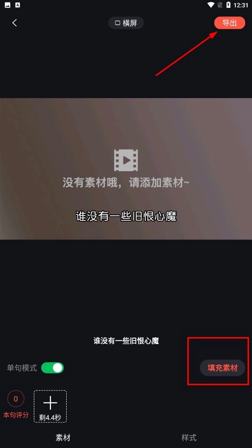 可点击【填充素材】功能按钮添加素材,完成后点击【导出】功能按钮,导出作品。