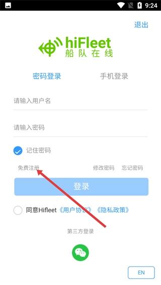 在登录界面中,点击【免费注册】选项,即可进入新用户注册页面。