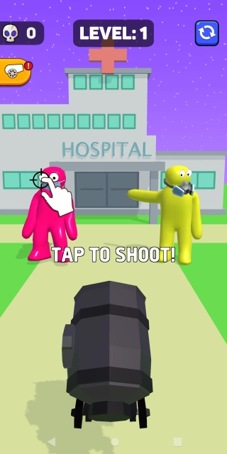 把准星移动到橡胶人身上并点击,就能发射炮弹对其发起攻击。只要成功击败关卡里的所有橡胶人,就能顺利通过这一关。