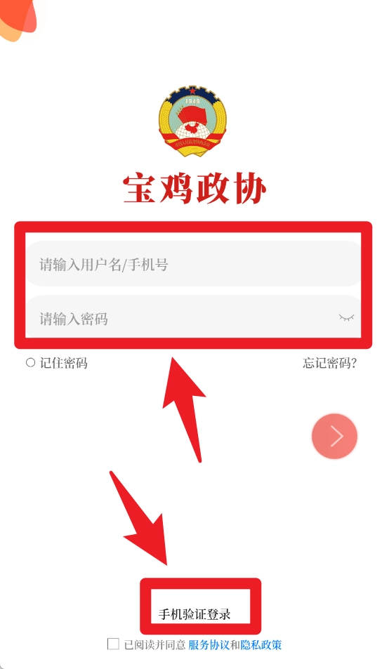 在登录界面,输入您的手机号码与密码,就能登录宝鸡政协平台。